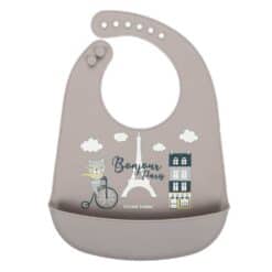 canpol babies bavoir bonjour paris silicone beige avec poche 74/027