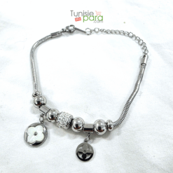 Bracelet “Éclat Trèfle” en Acier Inoxydable – Style Argenté et Nacre