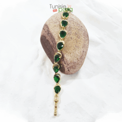 Bracelet Rivière en Acier Inoxydable Doré – Pierres Vert Émeraude en Goutte