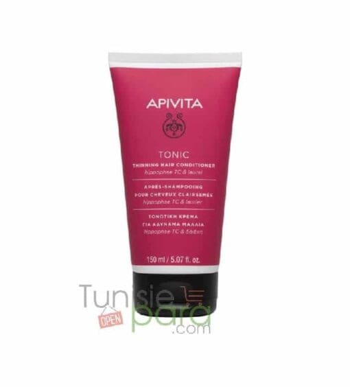 APIVITA Hair Care Tonic Conditioner Thinning Hair est un revitalisant tonifiant et fortifiant pour les cheveux sans vie. Formulé avec l’exclusivité. Hippophae Tonic Complex, ainsi que des protéines de lupin, cet après-shampooing est le parfait complément de tout traitement anti-chute. Sa formule bien équilibrée favorise des cheveux plus sains et plus forts, tout en améliorant leur apparence externe avec plus de brillance et de douceur. En même temps, la formule nutritive aide à protéger les cheveux des agressions extérieures, favorisant ainsi leur santé durable.