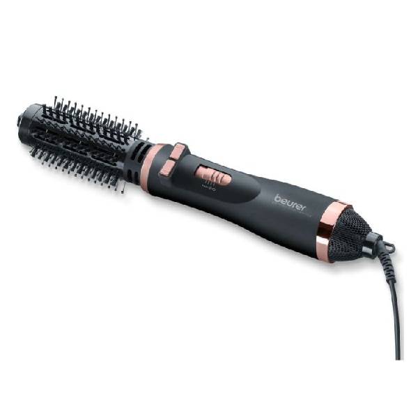 Brosse Soufflante Rotative BEURER HT80 – Puissance: 1000 Watts – Technologie ionique – 2 embouts interchangeables: brosse thermique, brosse bouclante – 2 niveaux de chaleur et 2 puissances de ventilation – Tension: 220-240V – Rotation automatique pour une mise en forme ultra-simple et rapide – Revêtement en céramique – Position air froid – Pivot 360° – Anneau de suspension – Surface Soft Touch – Couleur: Noir