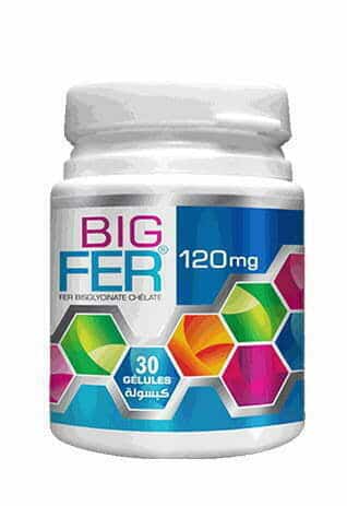 BigFer avec sa formule à base de Bisglycinate de Fer qui se compose d’une molécule de Fer ferreux liée à deux molécules de glycine, de sorte que le Bisglycinate de fer est mieux toléré que les autres molécules de fer,d’autre part, l’apport journalier en fer selon l’âge montre un besoin important en Fer, d’où l’intérêt de compléter cet apport journalier par BigFer avec ses deux présentations : BigFer 60 qui correspond à 12 mg de Fer, et BigFer 120 mg qui corresponds à 24 mg de Fer.