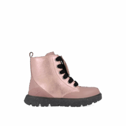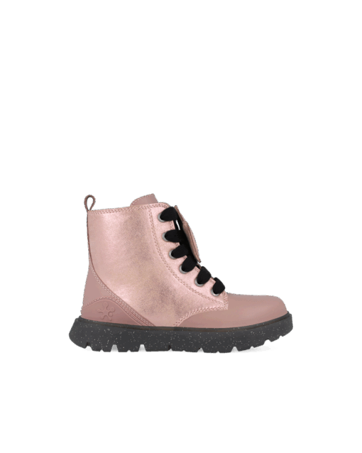 - Finition Rose Métallisée : La tige de la bottine arbore un cuir rose cuivré avec un effet légèrement scintillant, apportant une touche de brillance.