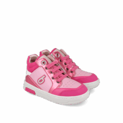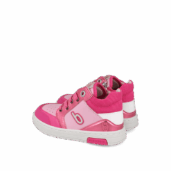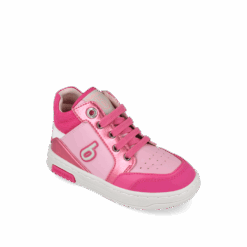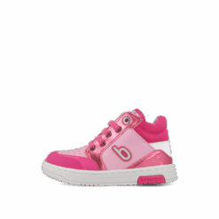 - Palette de Roses : La chaussure présente un dégradé de roses, allant du rose pâle sur les quartiers latéraux au fuchsia vibrant sur l’avant-pied, le col et la semelle.
