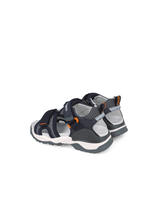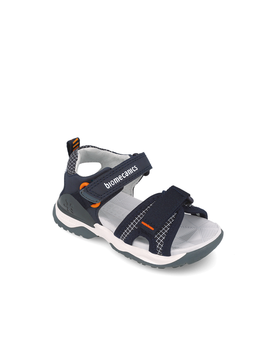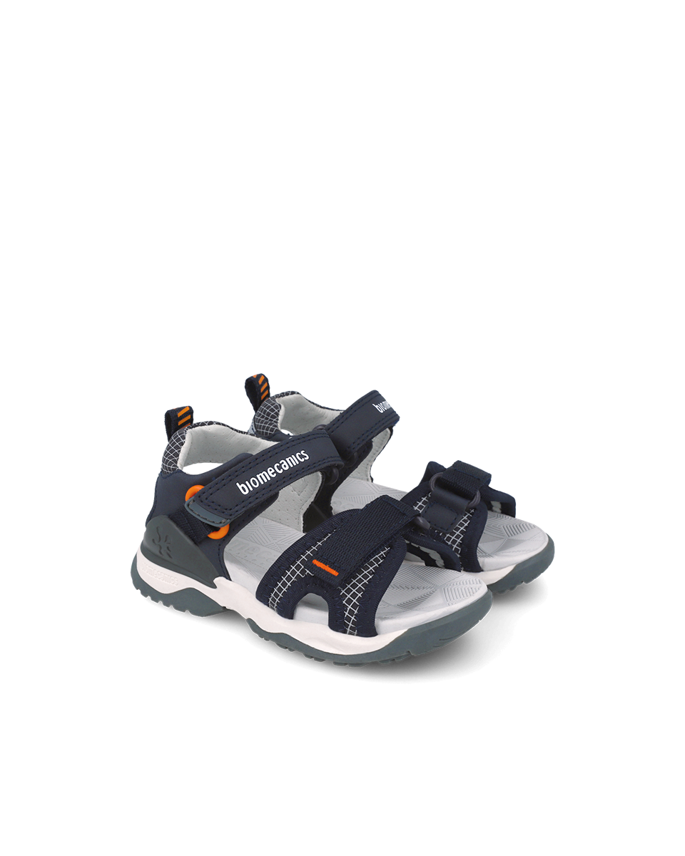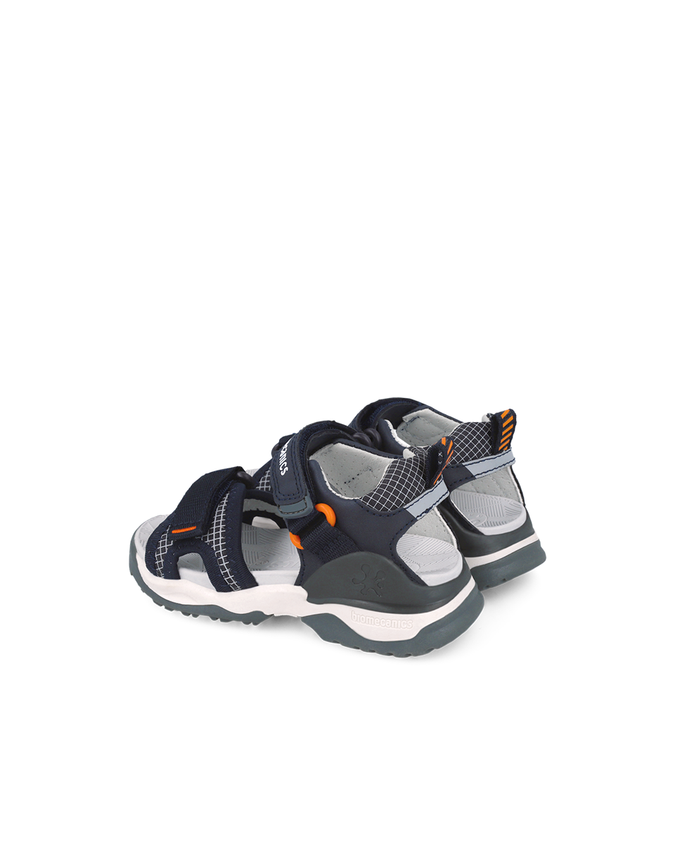 Le modèle Bioevolution pour garçon se décline dans un coloris bleu marine intemporel rehaussé de touches orange dynamiques. Ce design sportif et polyvalent s’adapte aussi bien aux tenues décontractées qu’aux aventures plus rythmées.