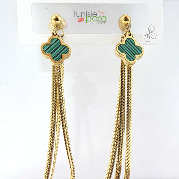UGS : boucles-doreilles-cascade-malachite-trefles-verts-et-chaines-serpent-en-acier-inoxydable Catégorie :