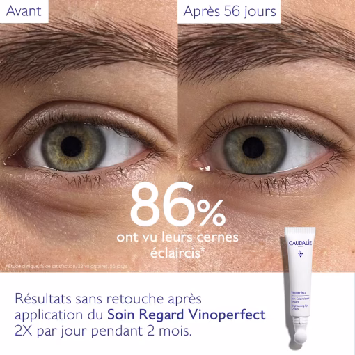 Le Soin Éclaircissant Regard Vinoperfect corrige tous les types de cernes, qu’ils soient vasculaires (cernes bleus ou violets) ou pigmentaires (cernes bruns ou noirs).