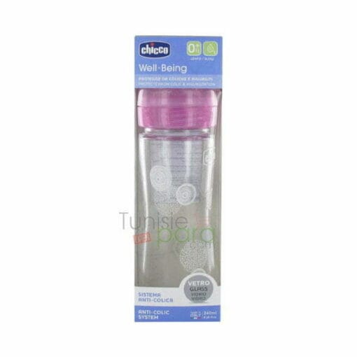 Chicco Well Being Biberon Verre 240 ml Débit Lent 0 Mois et + – Couleur : est un biberon à la forme ergonomique qui facilite la tétée tant pour les parents et les bébés. Il est doté d’une tétine physiologique anti-coliques à la forme symétrique, étirée et aplatie du silicone inspirée de la forme que prend le mamelon dans la bouche de bébé pendant la tétée. Elle favorise une prise du sein correcte et un mouvement péristaltique de la langue. Elle est souple et douce avec une finition Soft Sense qui donne à bébé une sensation agréable et naturelle. Elle s’adapte parfaitement à la bouche de bébé et respecte le mouvement naturel de succion.