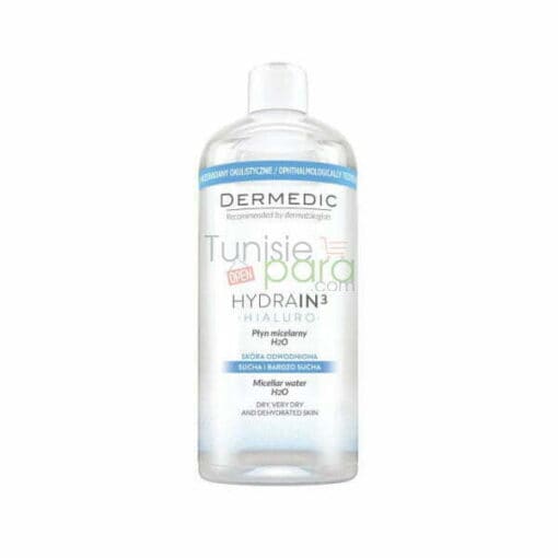 DERMEDIC HYDRAIN 3 EAU MICELLAIRE 500 ML fabriqué dans des conditions pharmaceutiques. Le produit a été testé dermatologiquement. Action Dédié au démaquillant yeux et visage pour les peaux sèches et déshydratées. Nettoie le maquillage et les impuretés, laissant une sensation de fraîcheur et de pureté – d’esters d’micelles acides gras « attirer » la pollution sans la nécessité d’une friction excessive de la peau avec un coton-tige. Ne pas irriter les yeux – hypoallergénique – propreté qui donne l’eau thermale ne cause pas d’irritation, même chez les personnes très sensibles. Il ne dessèche pas la peau comme d’autres détergents – L’acide hyaluronique – complexe d’acide hyaluronique Hydroveg VV – ramollir et à maintenir l’hydratation de la couche cornée de la peau. Il ne pas obstruer les pores. Il ne laisse pas de film sur la peau. Testé par des personnes portant des lentilles de contact. Indications Recommandées pour le nettoyage des yeux et de la peau sensibles. Aussi, pour les personnes qui ne tolèrent pas les démaquillants traditionnels : Comment humidifier légèrement le coton avec un liquide micellaire et bouger doucement le visage, le cou et le décolleté.