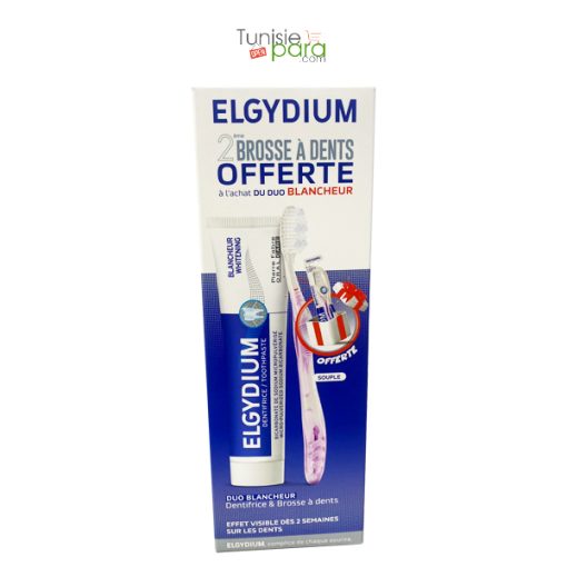 - 2X ELGYDIUM BROSSE A DENTS BLANCHEUR SOUPLE (1 Brosse Offerte ) : ELGYDIUM BROSSE A DENTS BLANCHEUR est une brosse à dents souple aux microbilles polissantes, pour des dents éclatantes. Les brins munis de microbilles ultrapolissantes (Microball System) d’ELGYDIUM Blancheur brosse à dents respectent l’émail des dents tout en favorisant une meilleure efficacité blanchissante