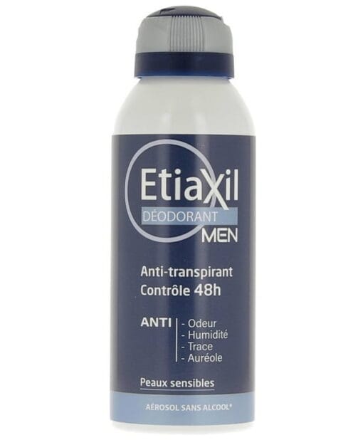 L’aérosol Etiaxil Men Anti-transpirant Contrôle 48h est conçu pour un usage quotidien contre la transpiration modérée.