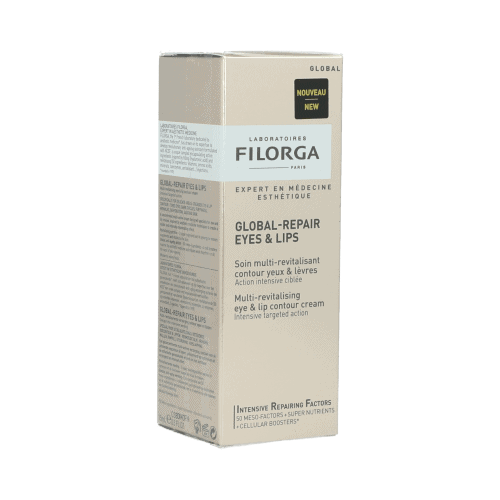 Global-Repair Eyes & Lips Filorga est un soin antiâge pour un effet de jeunesse visible sur le contour des yeux et des lèvres. Le produit nourrit la peau et agit intensément sur tous les signes visibles du vieillissement grâce à son effet multirevitalisant. Le soin est spécialement conçu pour les zones sensibles du contour des yeux et des lèvres et agit sur le regard fatigué, les cernes, les poches, les rides et la déshydratation.