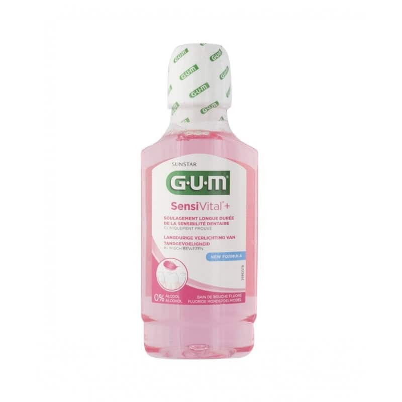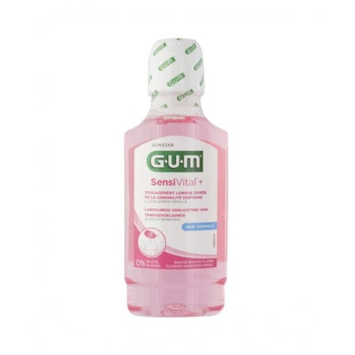 GUM SensiVital Bain de Bouche contient l’agent anti-sensibilité : Nitrate de potassium (5%) dont les effets ont été prouvés cliniquement. SensiVital Bain de bouche permet de