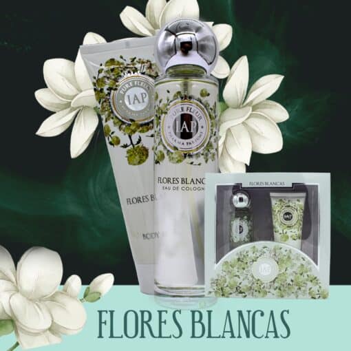 d’un lait corporel de 230 ml, tous deux au parfum frais de fleurs blanches.