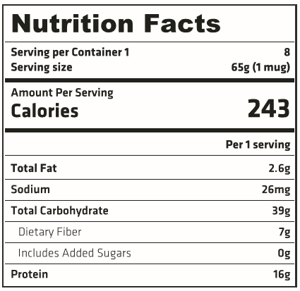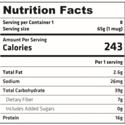 Avoine entier moulu précuit à la vapeur (GLUTEN), Concentré natif de protéines de lactosérum (LAIT) (avec ajout de Lécithine de Tournesol), Graines de Lin Brun, Graines de Sésame Doré, Arômes, Edulcorant (Sucralose).