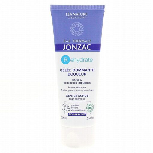 JONZAC REHYDRATE GELEE GOMMANTE DOUCEUR est un exfoliant doux mais efficace. Ce gommage contient une liste d’ingrédients entièrement naturels avec 15 % Eau thermale de Jonzac, 5% Glycérine végétale reconnue hydratante, Particules exfoliantes naturelles.