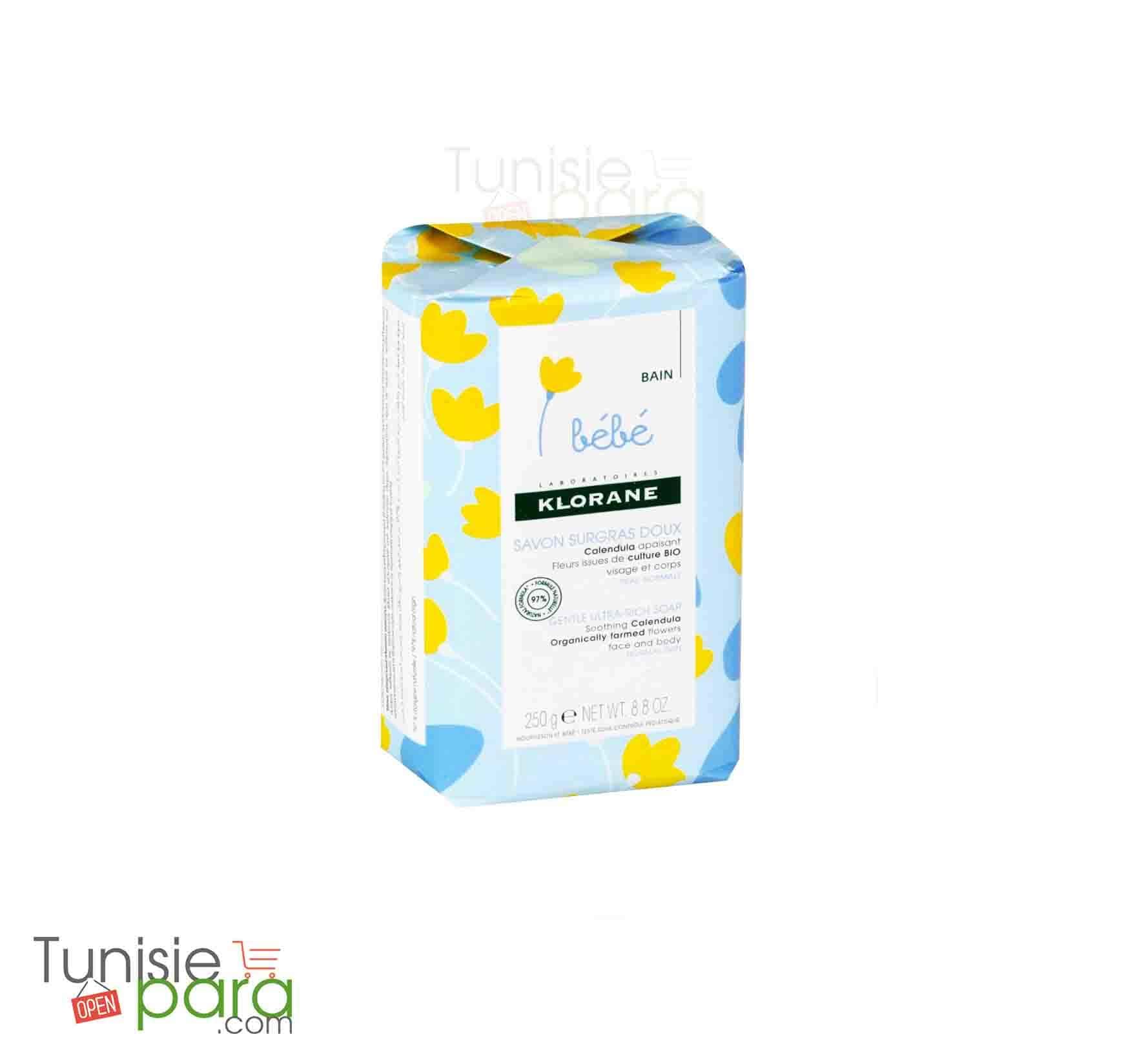 Pain riche en extrait de Calendula KLORANE, protecteur et apaisant, le Savon surgras très doux Klorane Bébé nettoie en douceur la peau de bébé sans l’irriter ni la dessécher, et la parfume délicatement.