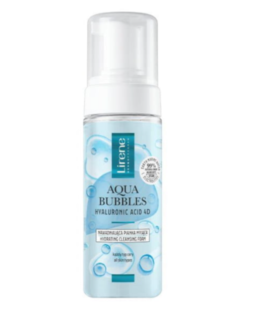 LIRENE AQUA BUBBLES Mousse nettoyante Hydratant, mousse délicate. Nourrit et hydrate la peau, lui redonnant son apparence saine – Lirene Aqua Bubbles. Hydratation en 5 secondes Lirene Aqua Bubbles. La délicate mousse nettoyante pour le visage nourrit et hydrate la peau, lui redonnant son apparence saine. 4D acide hyaluronique – hydrate et maintient l’hydratation à l’intérieur de la peau pendant longtemps. Électrolytes – Zinc, Cuivre, Calcium, Magnésium: équilibre la peau. Terre Marine Eau – l’eau de mer redonne éclat et bonne mine.
