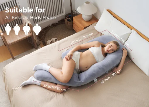 Conçu avec un contour en 5 points pour épouser parfaitement la tête, le dos, le ventre, les hanches et les jambes, ce coussin de grossesse offre un alignement optimal du corps. Il s’adapte aux points de pression, favorise la circulation sanguine, réduit les douleurs lombaires et les tensions au niveau des hanches, tout en maintenant un bon alignement de la colonne vertébrale pour un sommeil profond et réparateur.