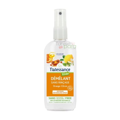 Natessance Kids Démêlant Bio sans Rinçage Orange-Citron 150 ml est un démêlant qui rend le coiffage des cheveux des enfants facile et permet d’éliminer les noeuds.