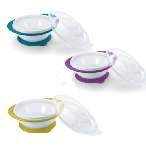 Le bol pour apprendre à manger Easy Learning offre un soutien optimal lors de l’alimentation et aussi lorsque les petits veulent prendre leur propre bouillie à la cuillère. Une ventouse sur le fond assure une position ferme et le bord incliné permet de sortir la cuvette particulièrement facilement dans les coins. Les accessoires sont également bien pensés et parfaitement adaptés à l’utilisation dans la maison de bébé : Le bol est muni de deux couvercles, dont l’un le recouvre librement, par exemple pour réchauffer le contenu du four à micro-ondes. Le deuxième couvercle peut être utilisé pour fermer hermétiquement le bol, par exemple pour transporter ou conserver un repas au réfrigérateur.