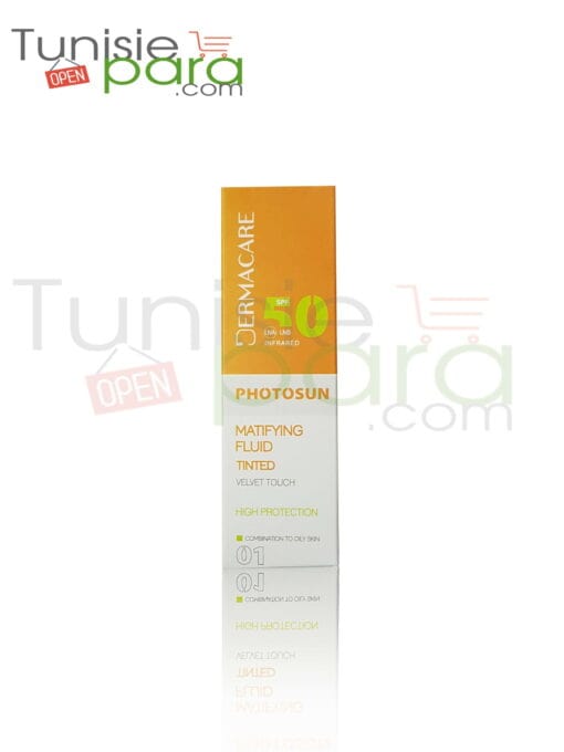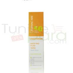 Le Fluide Solaire DERMACARE PHOTOSUN matifiant et teinté a haute protection spf 50 qui protège la peau des uva/uvb te des infrarouges.