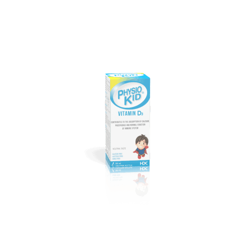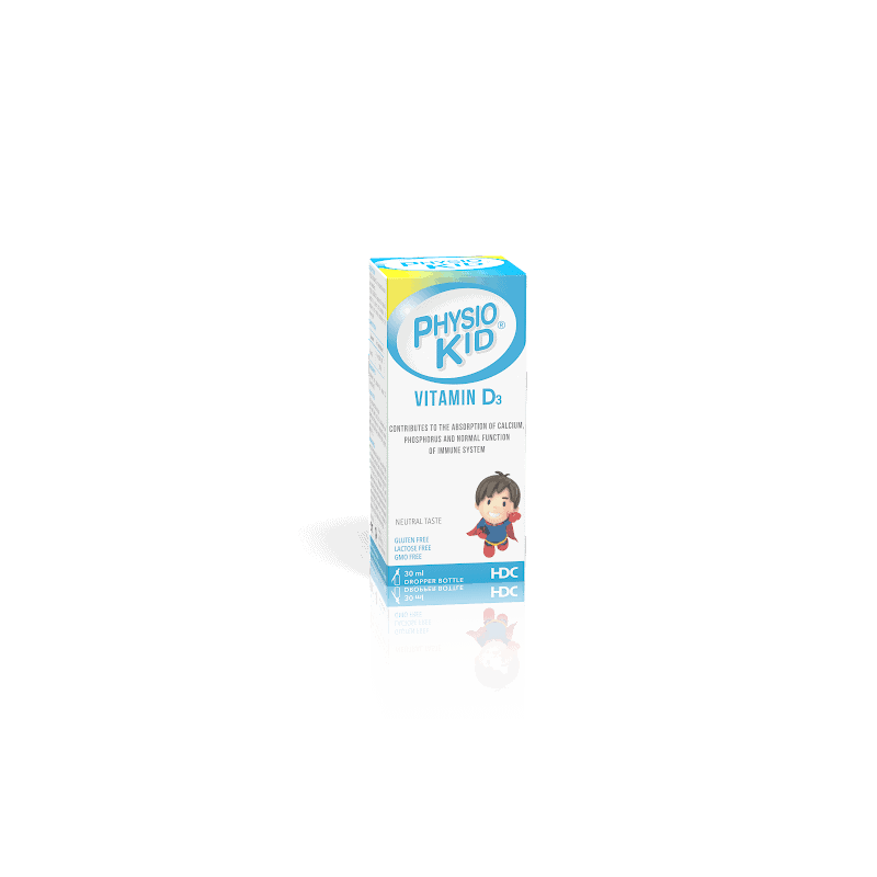 Physiokid Vitamine D3 favorise l’absorption intestinale du calcium et du phosphore. Elle contribue au fonctionnement normale du système immunitaire.