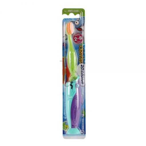Pierrot Brosse à Dents Sharky Souple Manche à ventouse 2-8ans est élaborée pour répondre aux besoins de jeunes enfants et les aider à préserver leur hygiène bucco-dentaire.