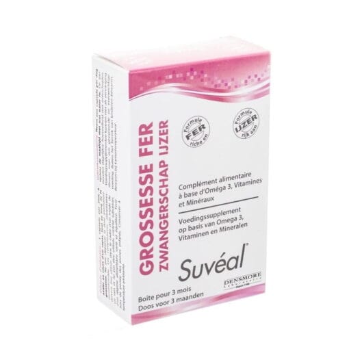 Suvéal Grossesse Fer, Densmore, est un complément alimentaire à base d’oméga 3, vitamines et minéraux destiné à aider les femmes pendant la période de grossesse.