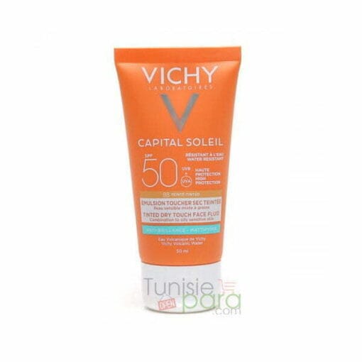 C’est une émulsion toucher sec Teintée SPF 50+ 50ML avec une texture légère anti-brillance est une haute protection solaire.