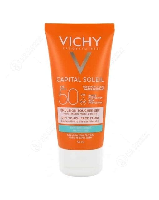 Avec une texture parfumée unique et résistante à l’eau l’émultion ideal soleil de Vichy offre un fini au toucher sec et doux anti-brillance.